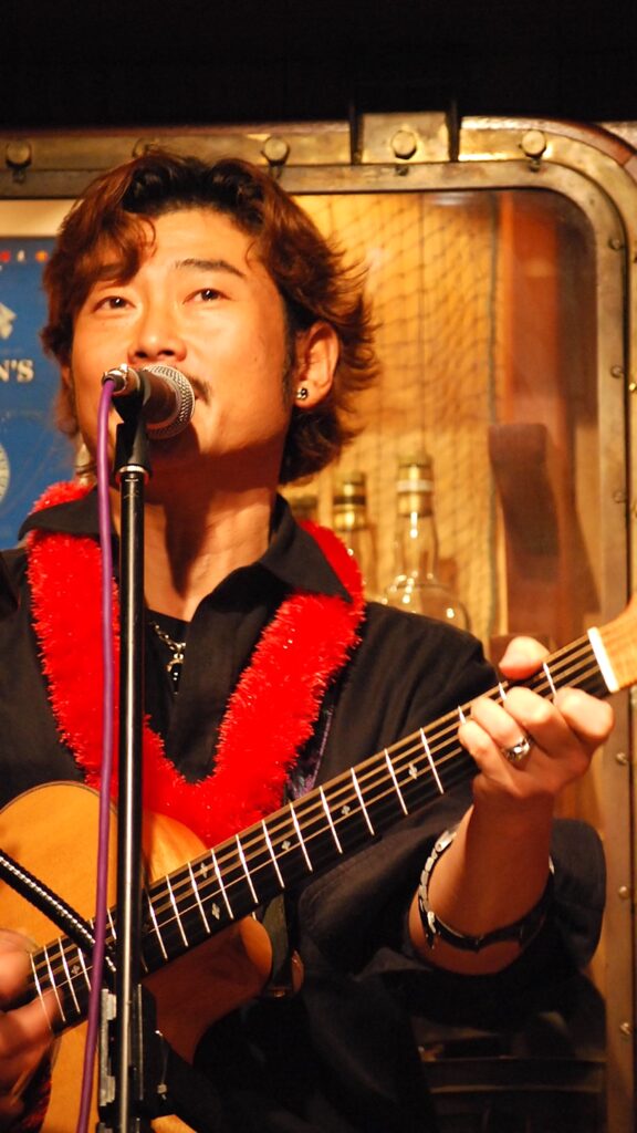 「縁があってウクレレを譲ってもらい、その後、クムフラ「トニータウベラ氏」フラマスター「ジョージナオペ」にHula& Hawaiian musicを学んだことから、一気にハワイアンの世界にハマりました。もちろんブルースも好きですが、先生から【ハワイアン以外の音楽を弾いたら破門】と言われてしまって(笑)それ以来、本当にハワイアン以外の音楽は演奏していません」
