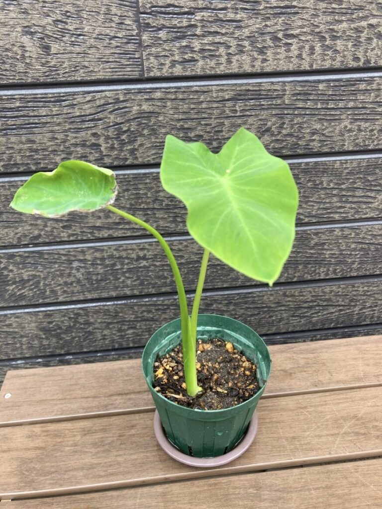 一般的な観葉植物や花物などと比べると葉が出て来ては枯れるまでのペースが早いので不安になるかもしれませんが、これはハワイ系のカロでも日本の里芋でも同じ。