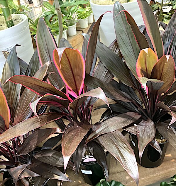 現に広葉タイプの緑葉のキー、所謂ティーリーフの鉢物は園芸店などでは売られていませんが、赤葉系のキーなら最近は園芸店などで売られています。