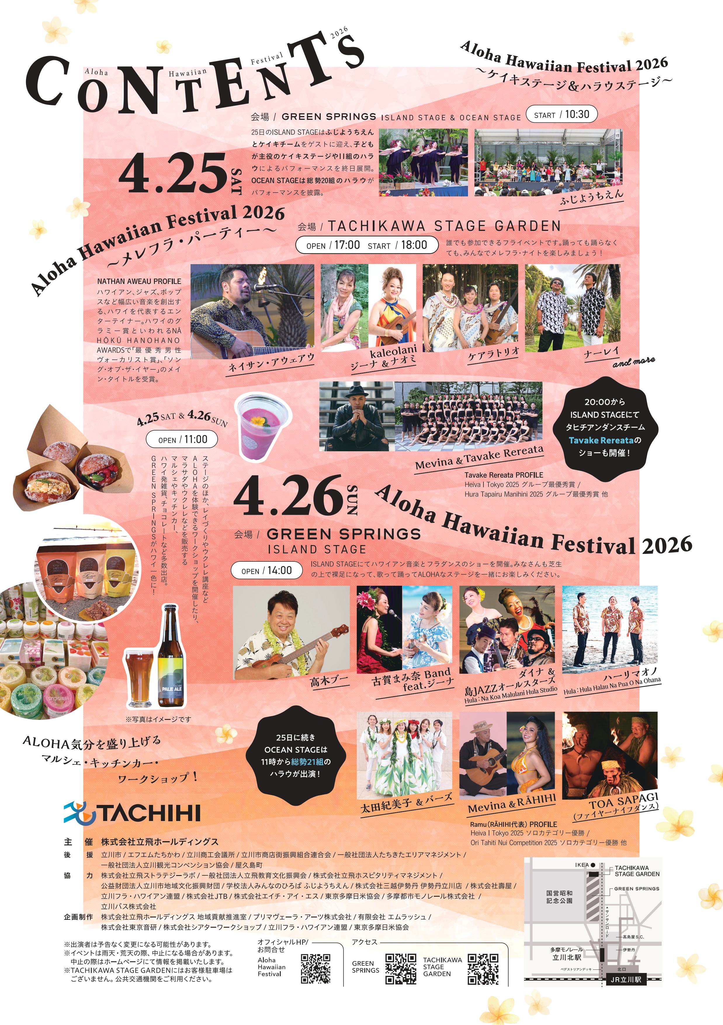 2026年4月25日(土)・26日(日)の2日間、TACHIHI presents「Aloha Hawaiian Festival 2026」開催。
